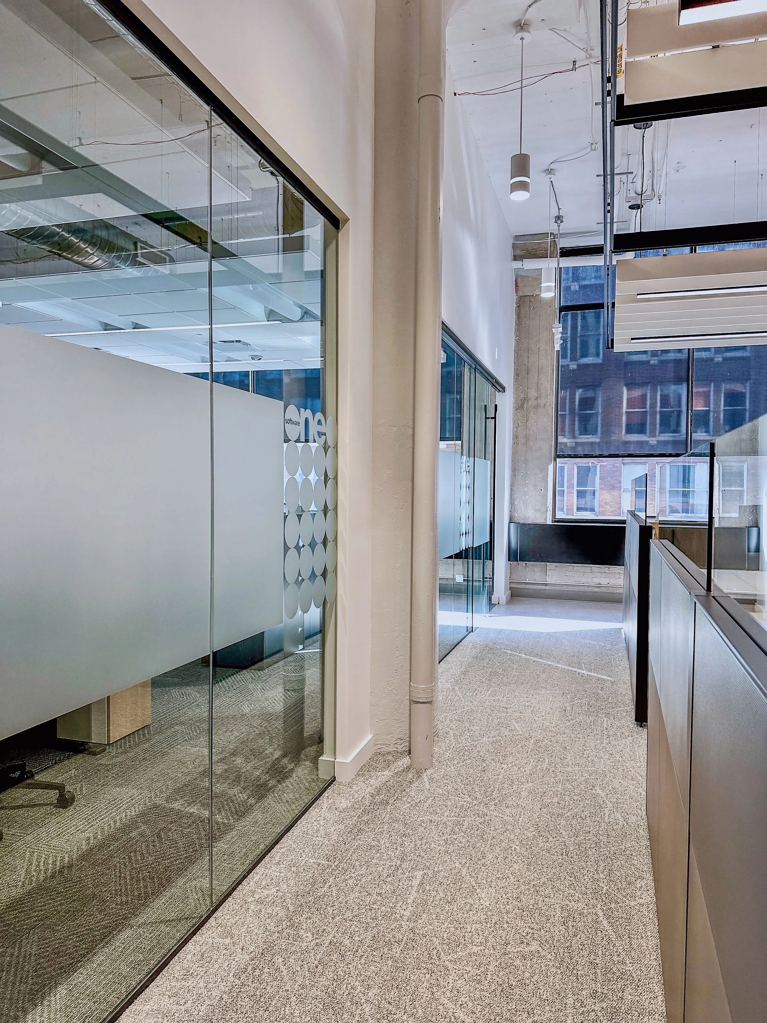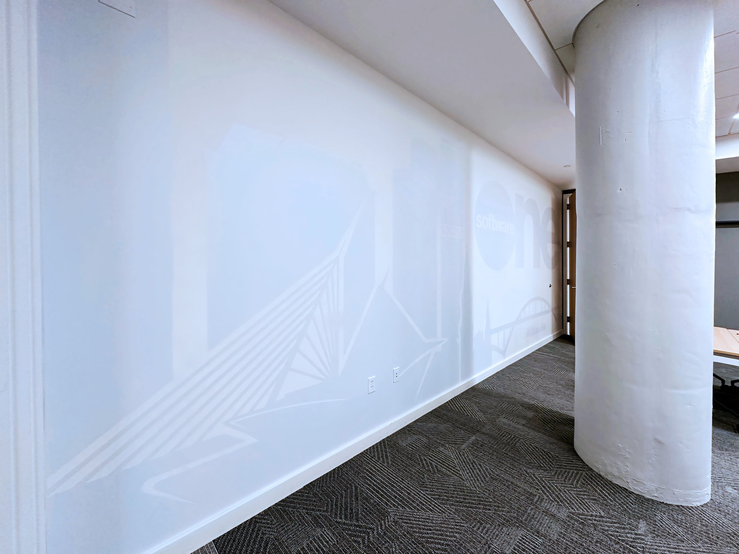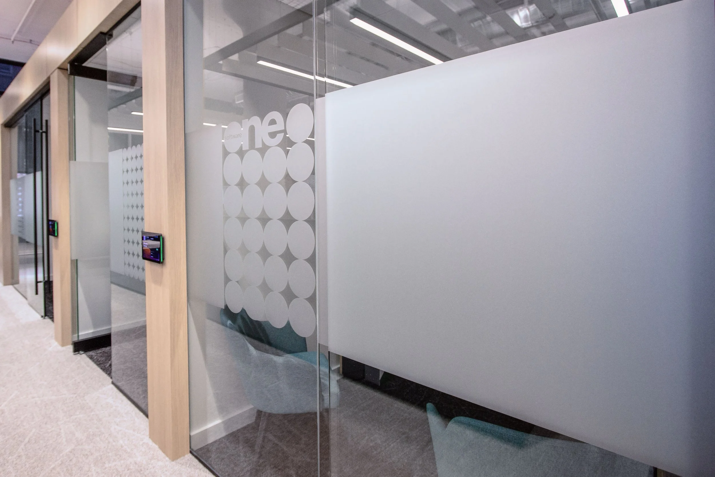 I directed the design and implementation of key touchpoints, including frosted glass treatments for conference rooms, impactful statement wall graphics, and overall interior integration. A tone-on-tone signage approach was used throughout to create a subtle yet sophisticated presence—delivering brand impact without competing with the modern architecture or SoftwareONE’s established visual identity. The result is a polished, professional environment that reflects the company’s innovative culture and global presence.
