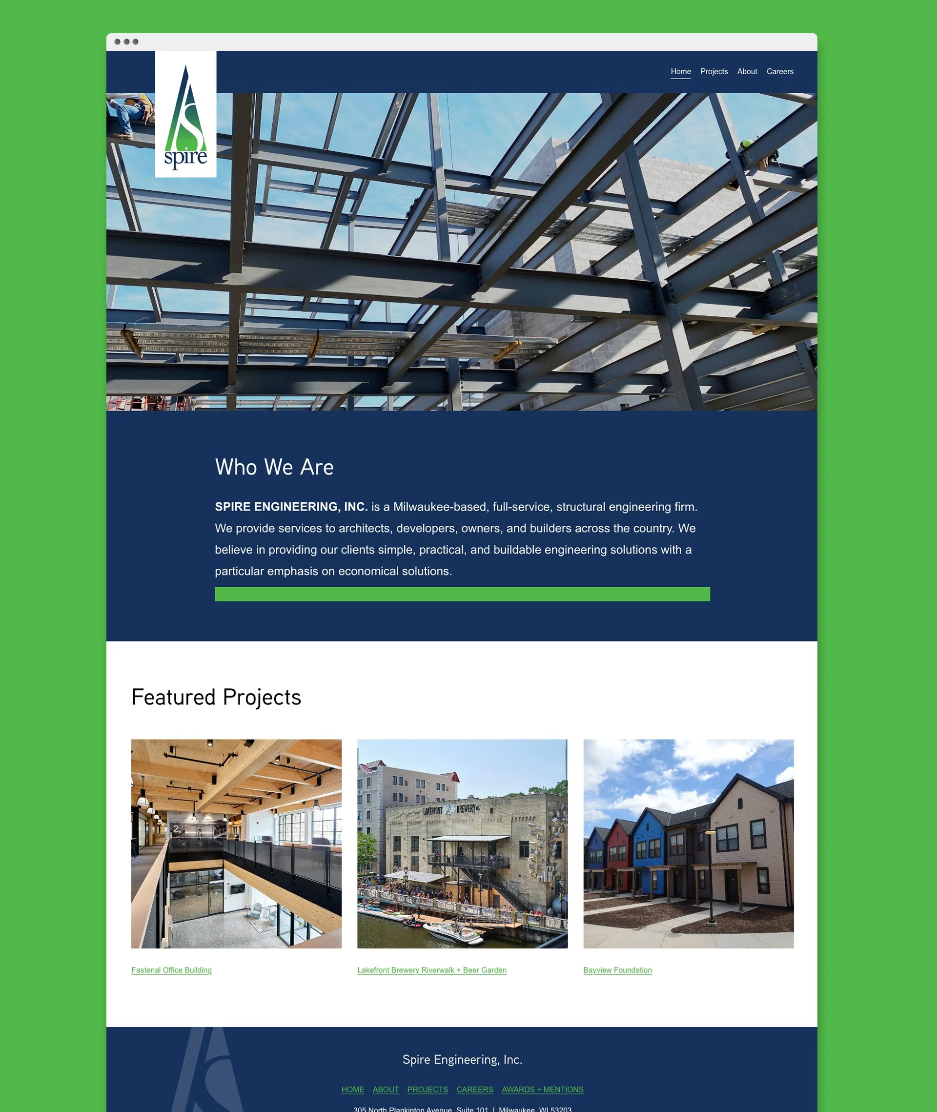When Spire Engineering’s website went down, I quickly created a temporary landing page within a day—providing clients with a clear message and maintaining trust while the new site was under development.